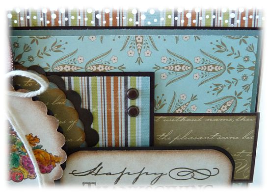 Oh, this is just fabulous. I love the non-traditional autumn colors you choose. Really beautiful card and great string you used for the bow. Terrific job on the Strings Attached challenge. So happy you could play along with us at the CCC this week.